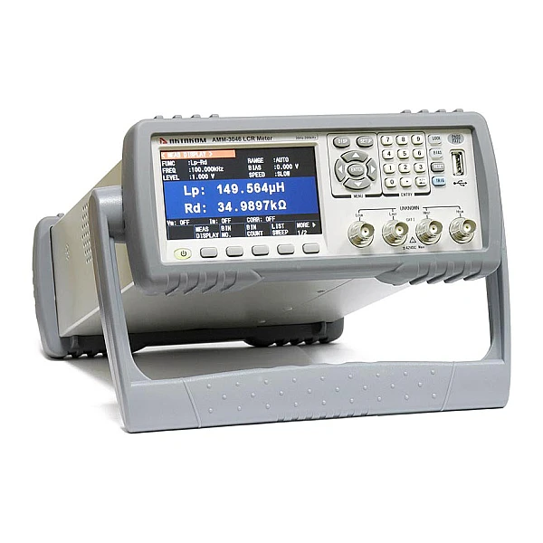 Прецизионный анализатор компонентов АММ-3046 (LCR-метр) обладает высокой точностью измерения (0,05%) и функциональностью, позволяет проводить измерения на 15025 точках с тестовой частотой от 20 Гц до 200 кГц. Анализатор компонентов АММ-3046 имеет встроенный источник смещения тока и напряжения, контроль уровня тестового сигнала, компаратор на 10 ячеек, возможность работы по списку и широкие возможности по подключению к ПК.