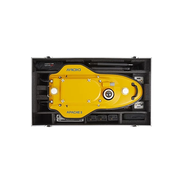 Безэкипажное судно Apache 3 создано для автоматизации процесса выполнения полевых промерных работ при инженерно-гидрографических и инженерно-гидрометеорологических изысканиях, таких как батиметрическая съёмка, топографическая русловая съёмка, промеры глубин на малых водоемах (озера, реки, побережья). Благодаря компактному размеру и массе (длина 1 метр, масса 7 кг без батарей и приемника) катером может управлять один человек.