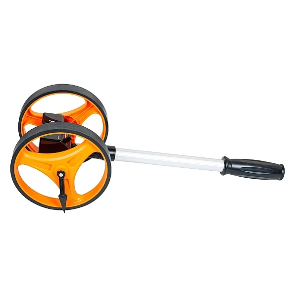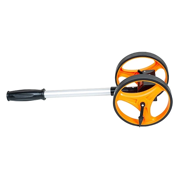 Инструмент позволяет фиксировать расстояния (как прямые отрезки, так и извилистые линии) до 9999.9 м с шагом 0.1 м и точностью ±0.5%. Конструкция дорожного курвиметра RGK Q5 основана на 2 колесах диаметром 159 мм. Такая схема вкупе с прочной резиновой шиной обеспечивает отличное сцепление с поверхностью, что положительно сказывается на качестве замеров.