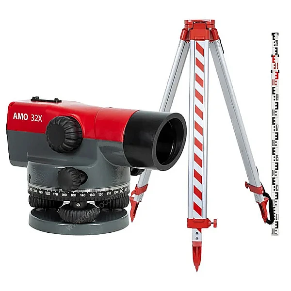 Комплект оптического нивелира AMO 32X - комплексное решение для строительства, геодезии и дорожных работ, проверенное профессионалами в полевых условиях. В набор входит прибор с увеличением 32 крат, четырехметровая рейка, алюминиевый штатив с надежной винтовой фиксацией стоек и принадлежности для юстировки.