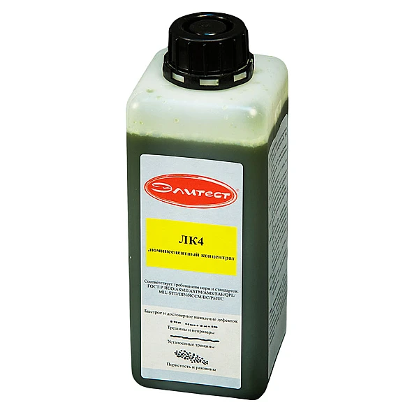 Концентрат Элитест ЛК4 предназначен для приготовления люминесцентной магнитной суспензии на водной основе. Полученная суспензия используется при проведении неразрушающего магнитопорошкового контроля в качестве индикаторного вещества.