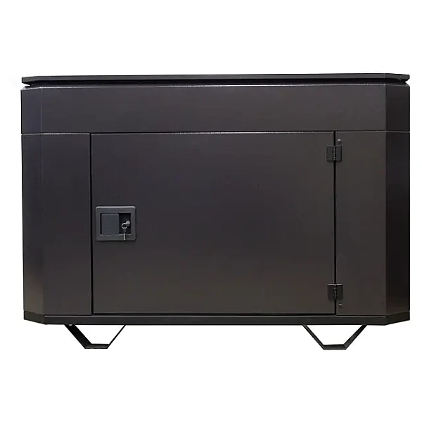 Кожух для генератора предоставляет легкий доступ к оборудованию со всех сторон, для этого предусмотрены два боковых люка и верхняя крышка, которая крепится петлями промышленного класса и удерживается в нужном положении газовыми амортизаторами. Обе дверцы и крышка защищены замками.