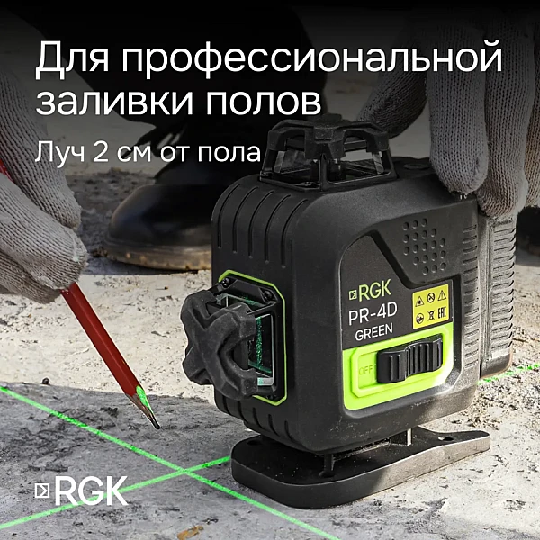 Купить Лазерный уровень RGK PR-4D Green с зеленым лучом в Калининграде легко — просто позвоните по телефону: 8-800-551-11-01