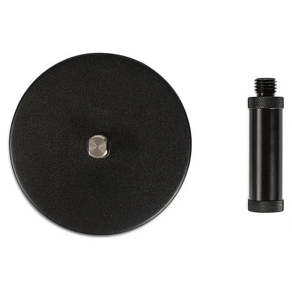 Устройство, которое способно с легкостью выдержать любой геодезический приемник, представляет собой круглое основание диаметром 130 мм и толщиной 20 мм, в которое встроен мощный магнит, и стойку в виде мини-вехи высотой 80 мм из анодированного алюминия. Разборная конструкция изделия упрощает его хранение и транспортирование.