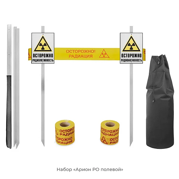 В набор «Радиационная опасность АРИОН РО полевой» входят 6 стоек облегченной конструкции из прочного алюминиевого сплава Д16Т. При транспортировке заостренные концы стоек помещаются в дополнительный предохранительный чехол. Стойки заострённым концом забиваются в грунт по периметру зоны работы с источником ионизирующего излучения. На стойках устанавливаются знаки «Осторожно радиоактивность» и натягивается оградительная лента. Для крепления знаков на стойках используются болты и барашковые гайки.