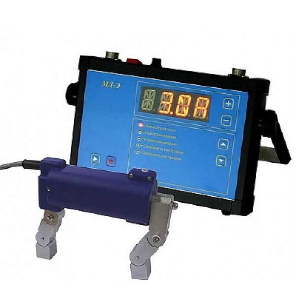 Универсальный инструмент для ручного магнитопорошкового контроля. НАличие электронного модуля управления позволяет регулировать ток намагничивания, сохранять настройки в памяти прибора, имеет режим "ток-пауза", автоматическое размагничивание, регулируемую длительностью намагничивания и размагничивания и другими функциями.