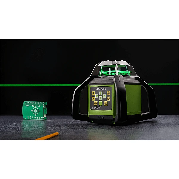 Ротационный нивелир RGK SP-610G позволяет проводить измерения и нивелировку с приемником на расстоянии до 300 метров, диаметр рабочей зоны таким образом составляет 600 метров. Погрешность проекции минимальна - всего 1 мм на 10 метров. Оборудование можно установить двумя способами для создания горизонтальной или вертикальной линии.
