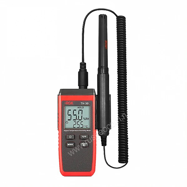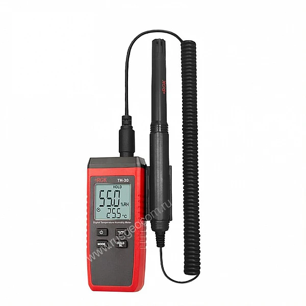 Цифровой термогигрометр RGK TH-30 - это надежный и точный прибор для измерения климатических параметров в помещении. Главное преимущество модели - выносной датчик на длинном, гибком проводе, с помощью которого удобно проводить локальные замеры в местах с ограниченным доступом, таких, как вентиляционные каналы, технологические отверстия в стенах или плотные штабели продукции.