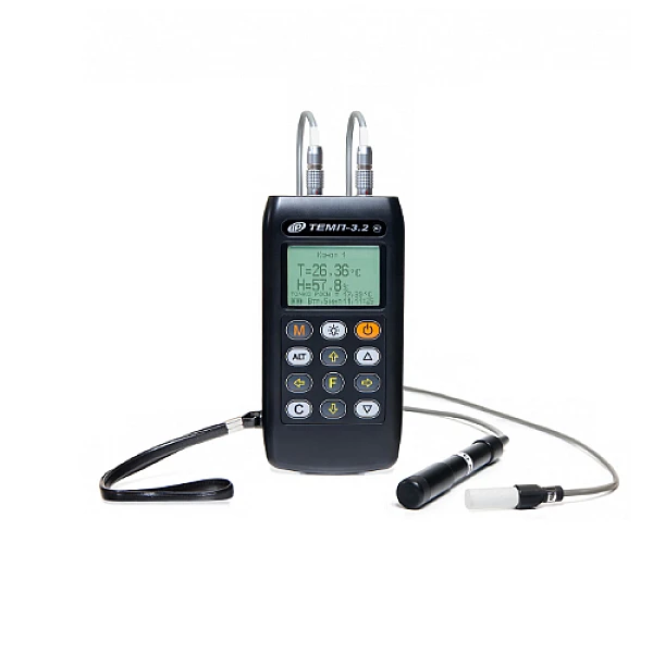 Термогигрометры ТЕМП-3.22 предназначены для измерения относительной влажности и температуры воздуха и определения точки росы. ТЕМП-3.22 предназначен для измерений и регистрации сигналов с двух датчиков: 1) совмещённого датчика температуры и влажности воздушной среды;2) дополнительного датчика температуры. Прибор имеет память измерений с привязкой ко времени и дате, режим регистрации измерений с задаваемым пользователем интервалом времени, связь с ПК для передачи данных измерений..